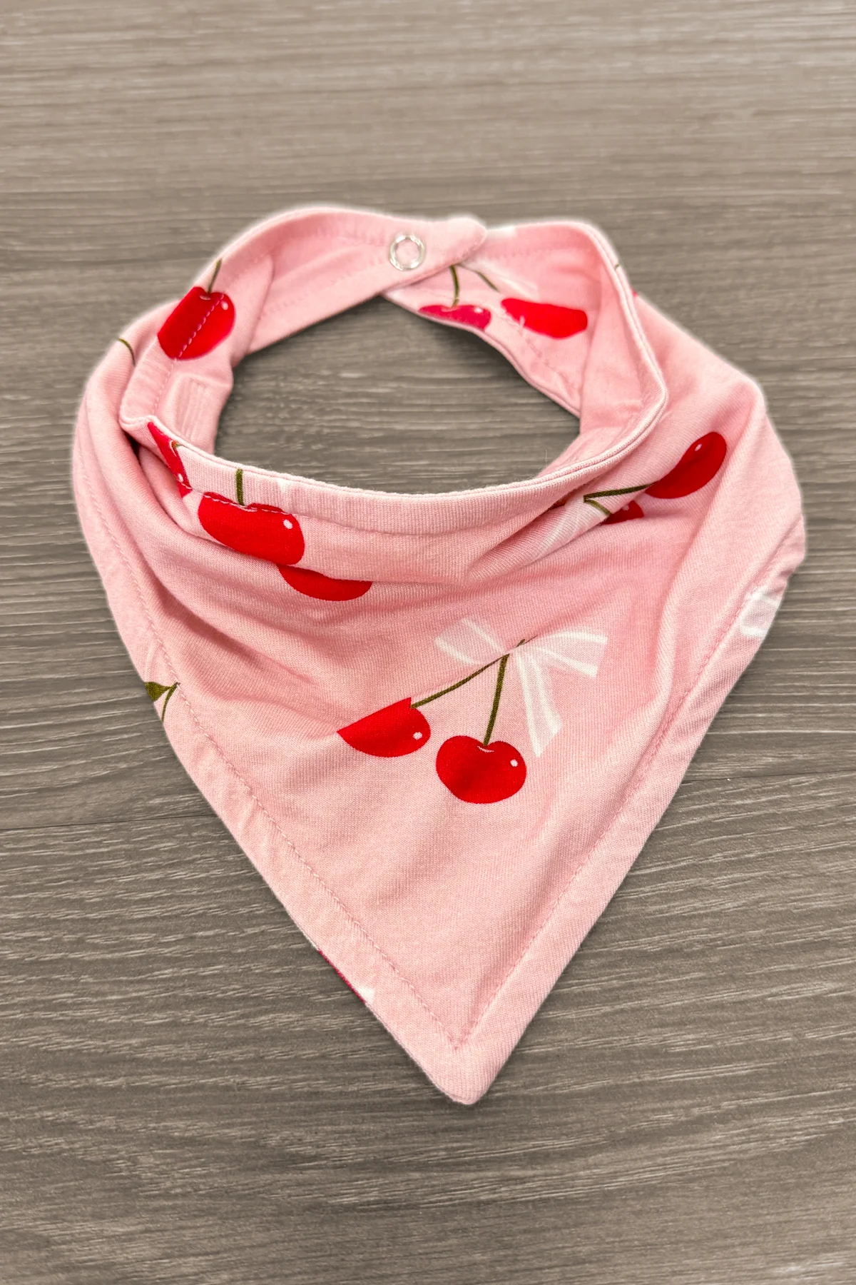 - Matching cherry print bib