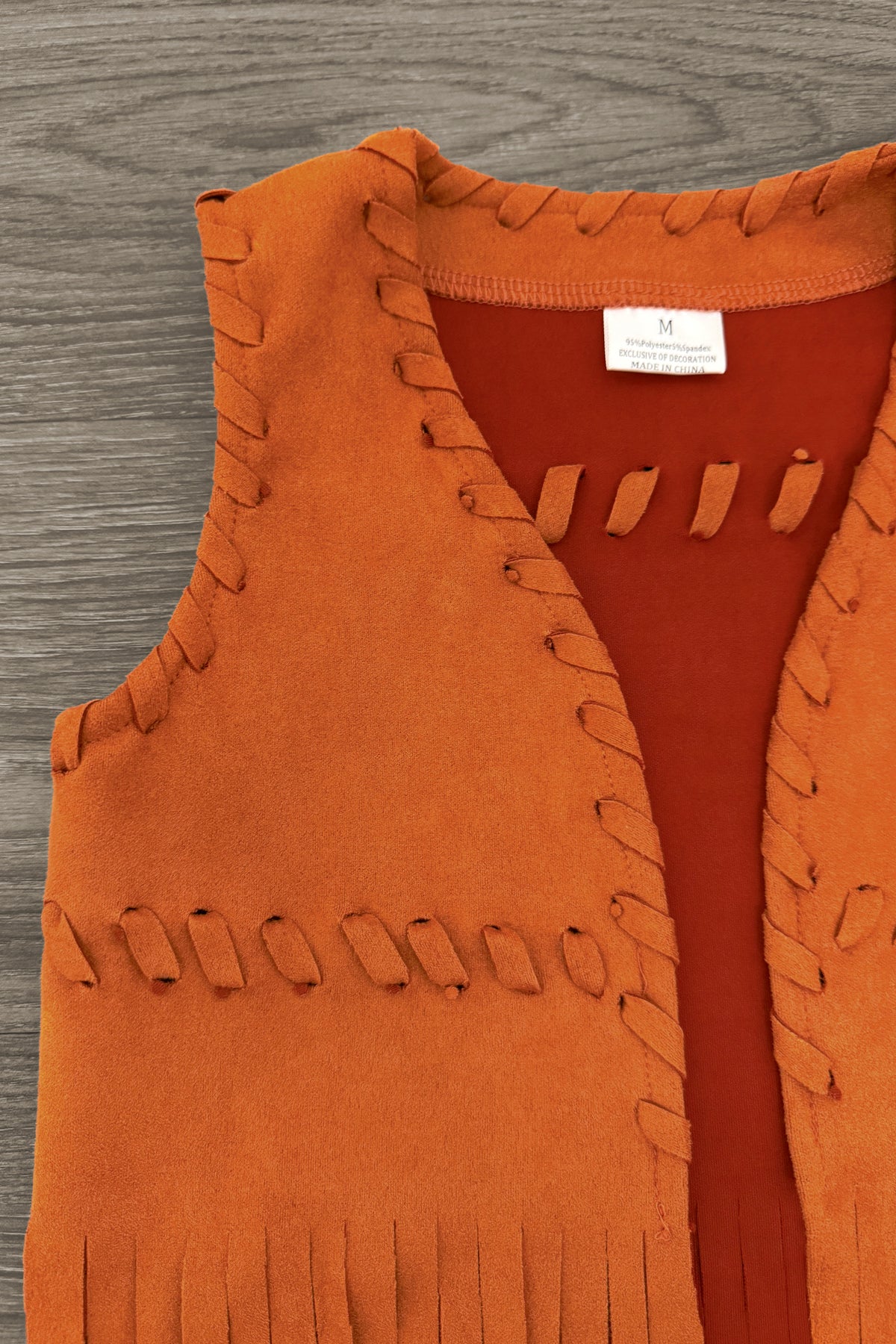 - Girls' rust vest features an allover suede design with fringe